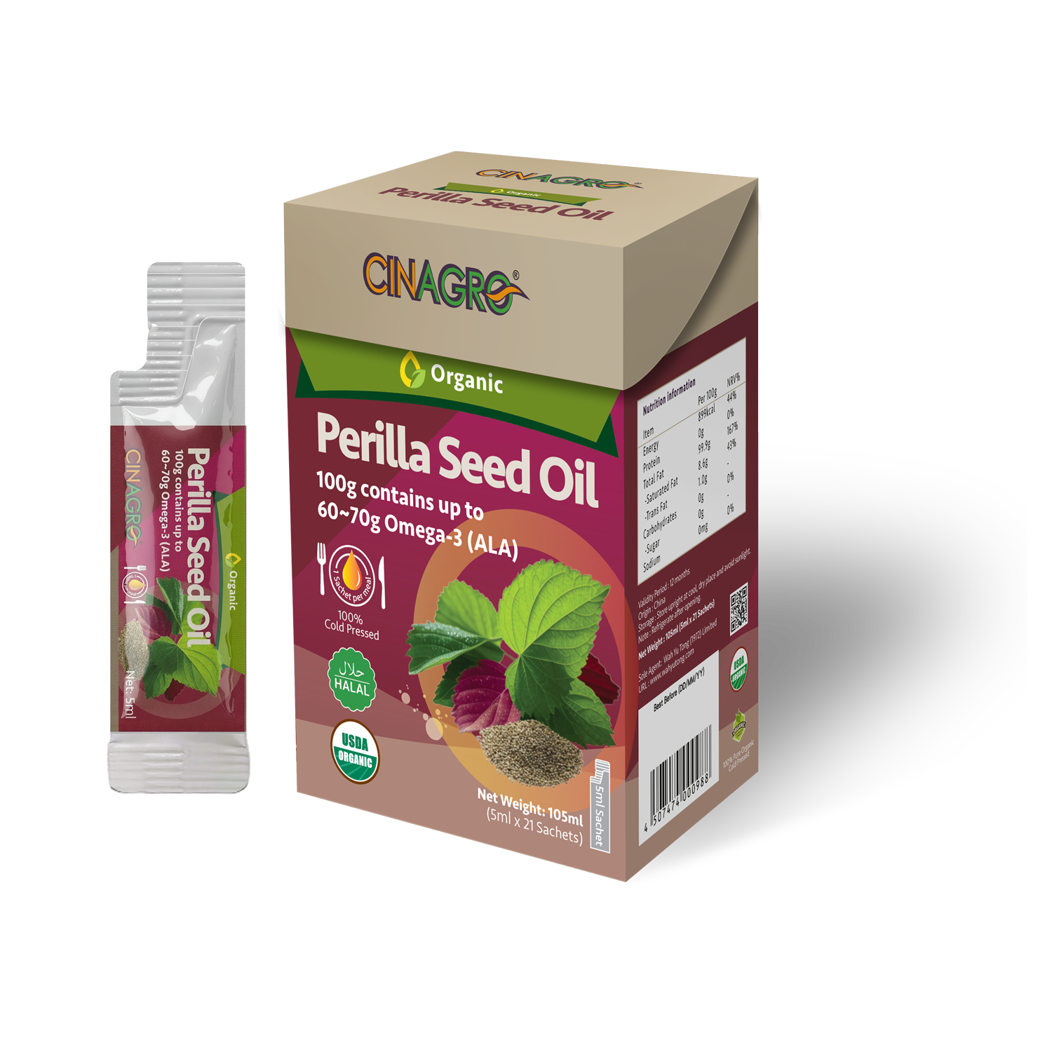 Cinagro®鋅納果® 100%冷壓有機紫蘇籽油 105ml (21包 x 5ml)